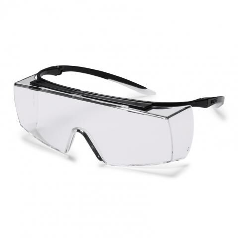 Surlunettes de protection avec branches souples. Traitement UVEX SUPRAVISION® SAPPHIRE. Faces interne et externe résistantes aux rayures et aux produits chimiques.