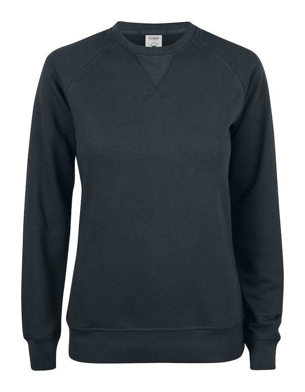 Sweat-shirt col rond femme. Manches raglan. Poche secrète zippée. Bord-côte 1x1 avec élasthanne aux poignets et à la taille. Earphone system. Coutures flatlock stylisées. | Intérieur finition French Terry.