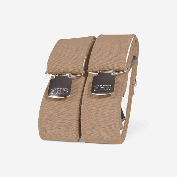 Bretelles unies avec clip en acier. Dos en forme de X, croix en cuir. 4cm de large.