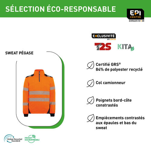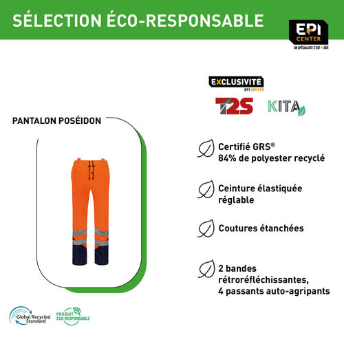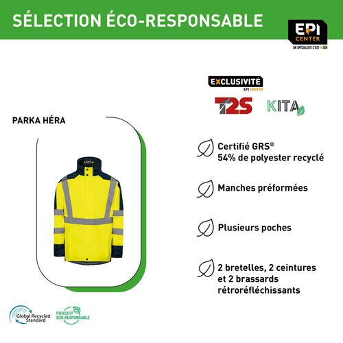 La gamme KITA, développée avec T2S et récemment labellisée GRS (Global Recycled Standard) garantissant l'utilisation de matériaux recyclés ainsi qu’une production respectueuse de critères environnementaux stricts.
